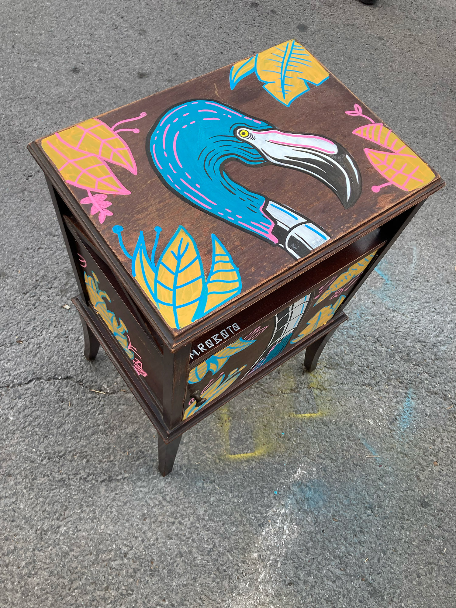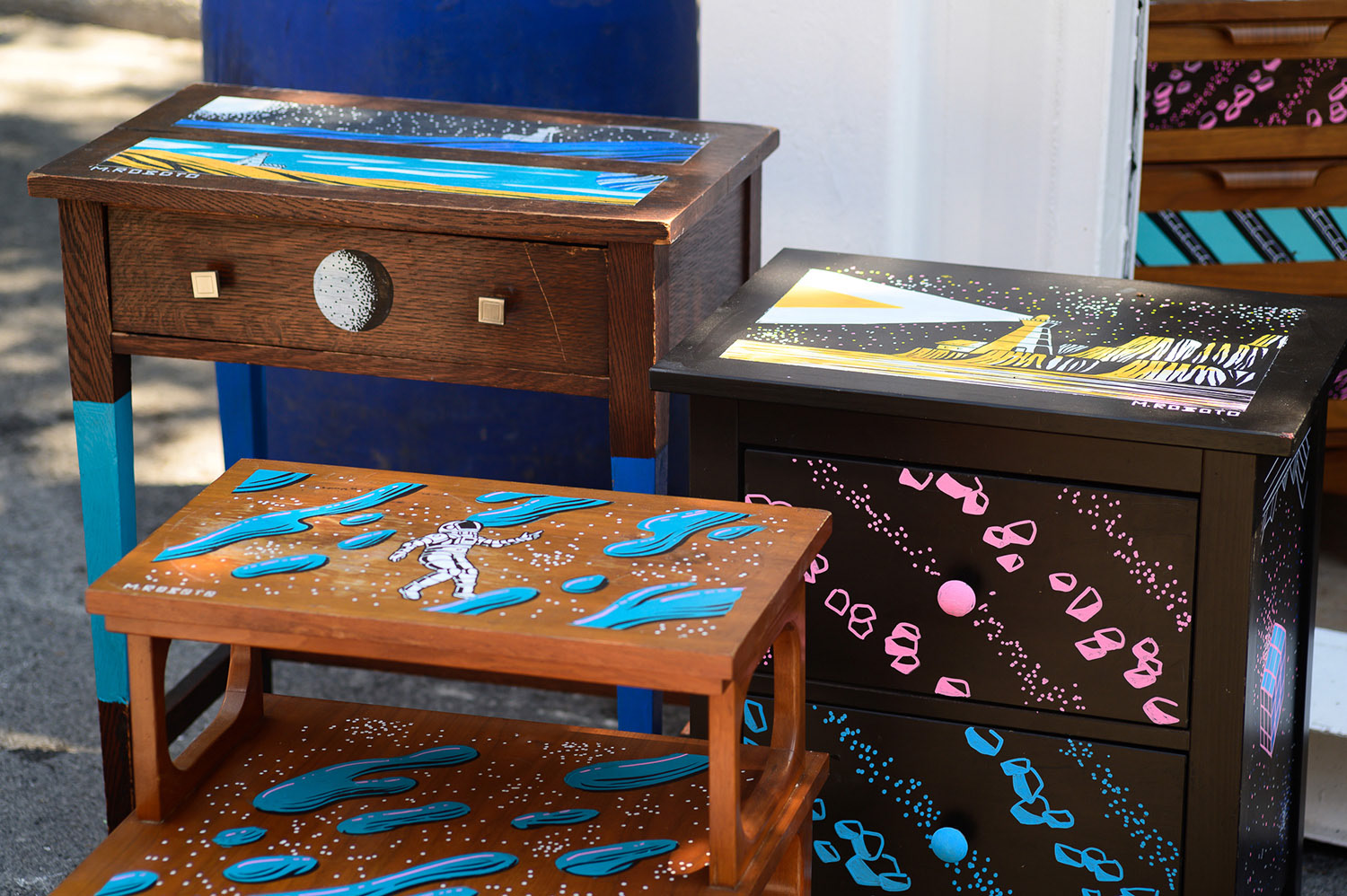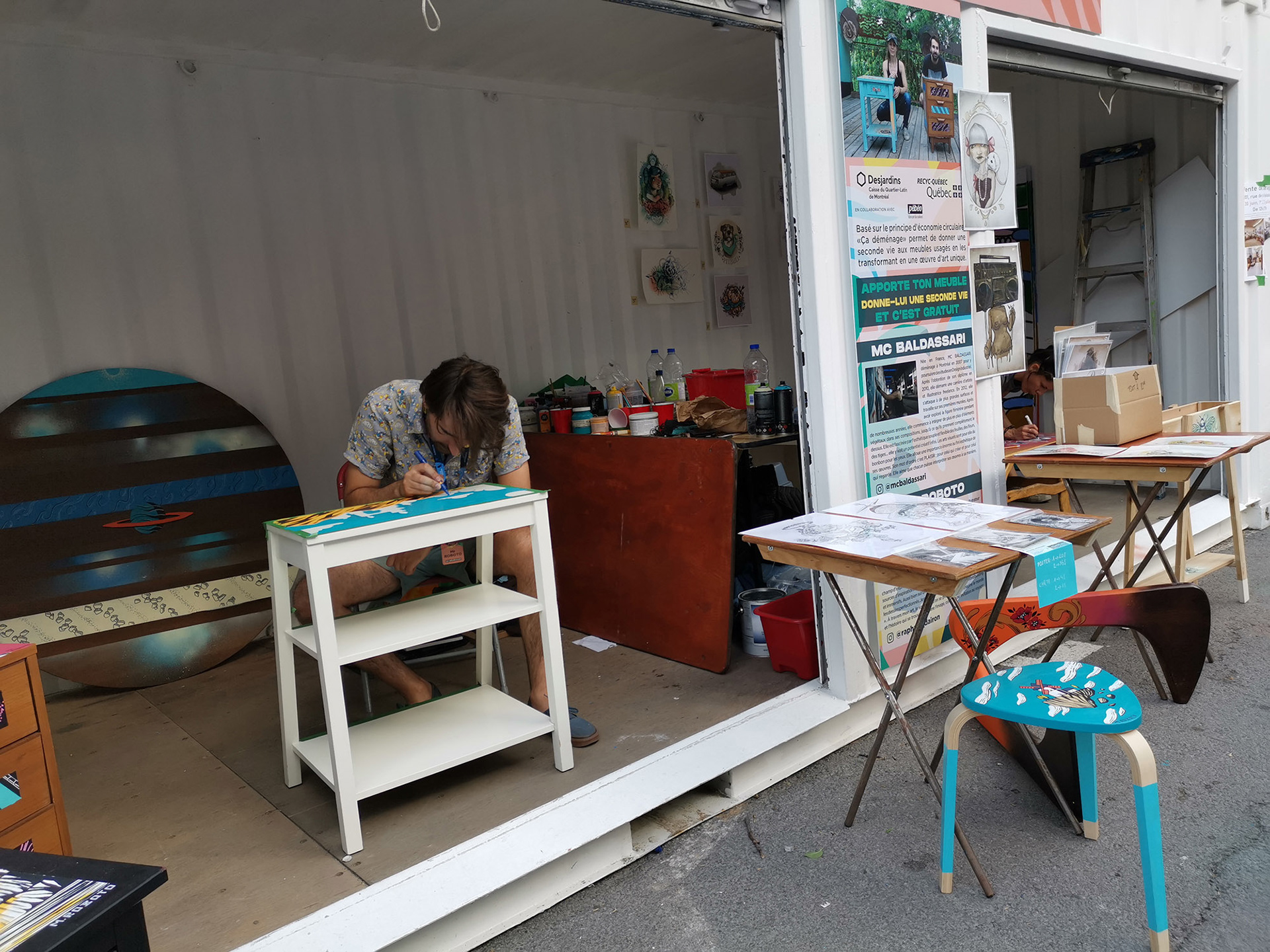 . During the Moving week in Montreal, volunteers are invited to present their old furniture on which I was able to paint on to give them a second life.