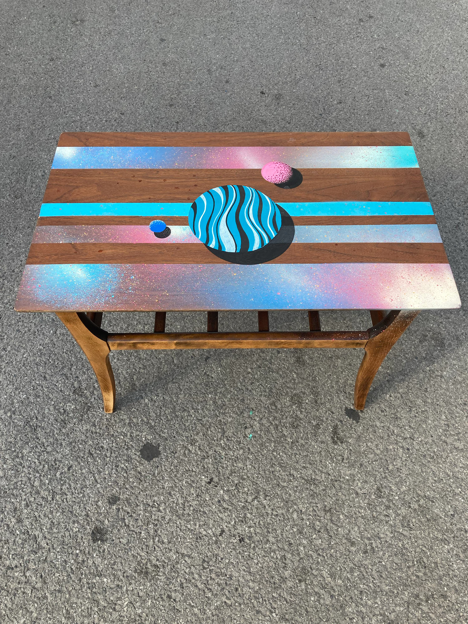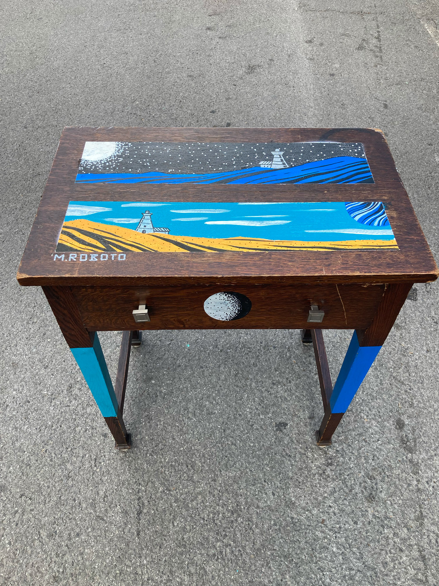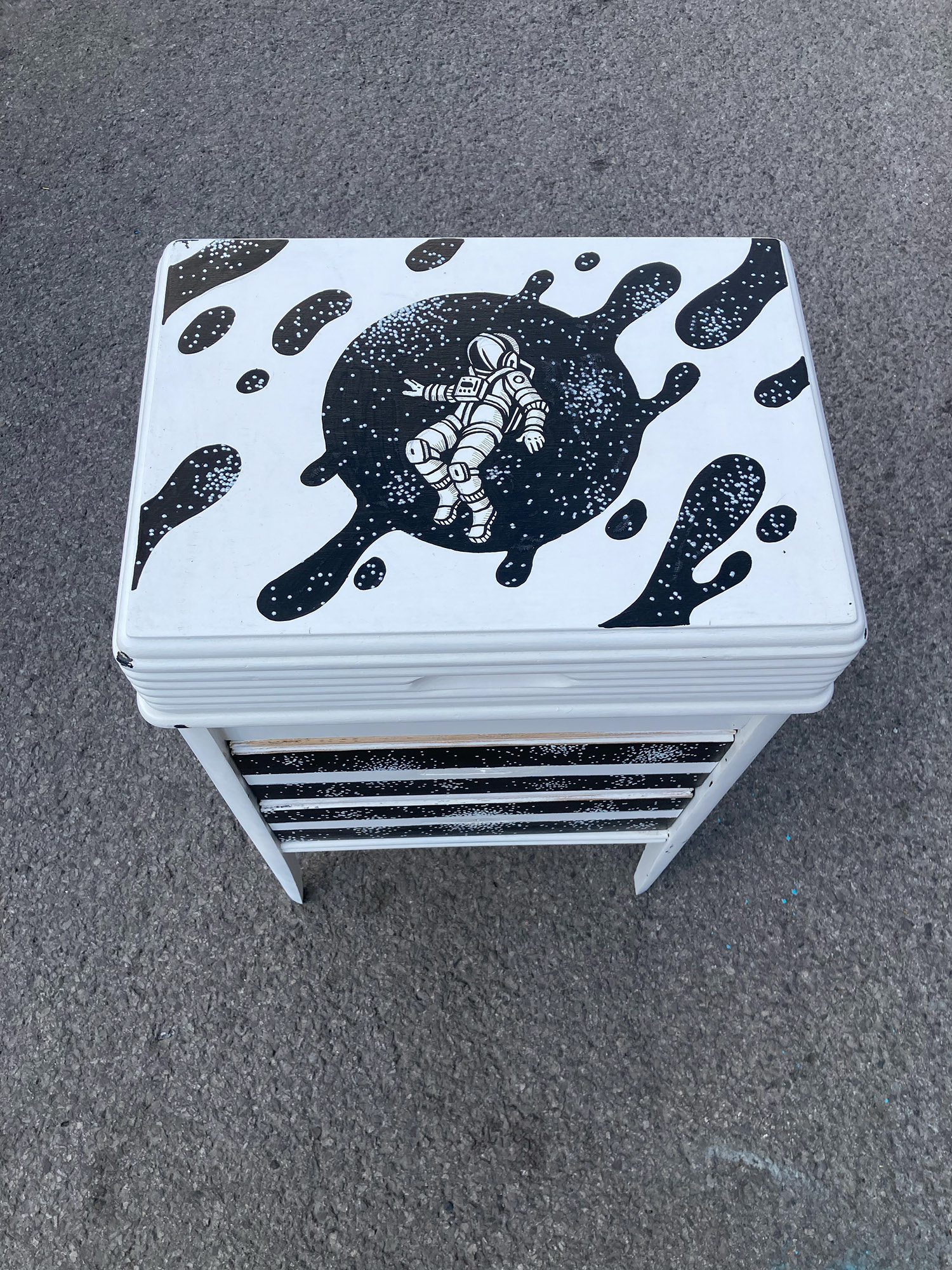 . During the Moving week in Montreal, volunteers are invited to present their old furniture on which I was able to paint on to give them a second life.